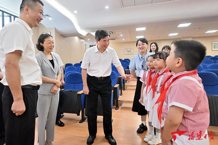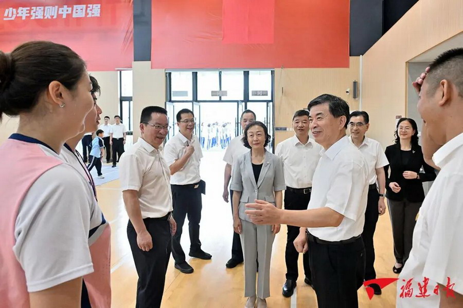 福州市橫嶼學校是去年啟用的九年一貫制新校,隨遷子女超過學生數的一半,對優化區域教育資源配置發揮了積極作用。走進書聲瑯瑯的美麗校園,周祖翼詳細了解學校規劃建設,五育并舉、體教融合特色教學,中華優秀傳統文化與思政教育結合等情況。周祖翼看望慰問了青年教師代表,向大家送上節日祝福,關切詢問工作生活、健康保障等情況,并勉勵他們堅守教育初心,善于學習新知識、新技術、新理論,不斷探索創新教育教學方法,強化環境育人、文化育人,為教育強省建設作出應有貢獻。周祖翼還現場察看了不同年級的學生參加跑步、羽毛球、游泳等體育項目,開展編程、建構及歌舞排練等活動,關心學習、用餐等情況,叮囑要加強體育鍛煉,讓學生從中享受樂趣、增強體質、健全人格、鍛煉意志,增強集體榮譽感;提倡動腦動手結合,培養科學思維、探索未知興趣和創新意識;弘揚勞動精神,促進學生德智體美勞全面發展。要強化校園食品安全保障,確保食品質量和營養,共同守護好學生身心健康。