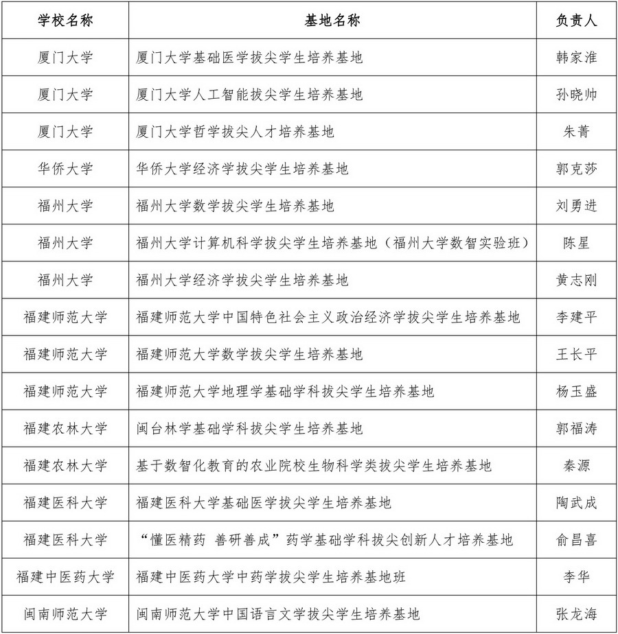 福建省首批基礎(chǔ)學(xué)科拔尖學(xué)生培養(yǎng)基地立項名單