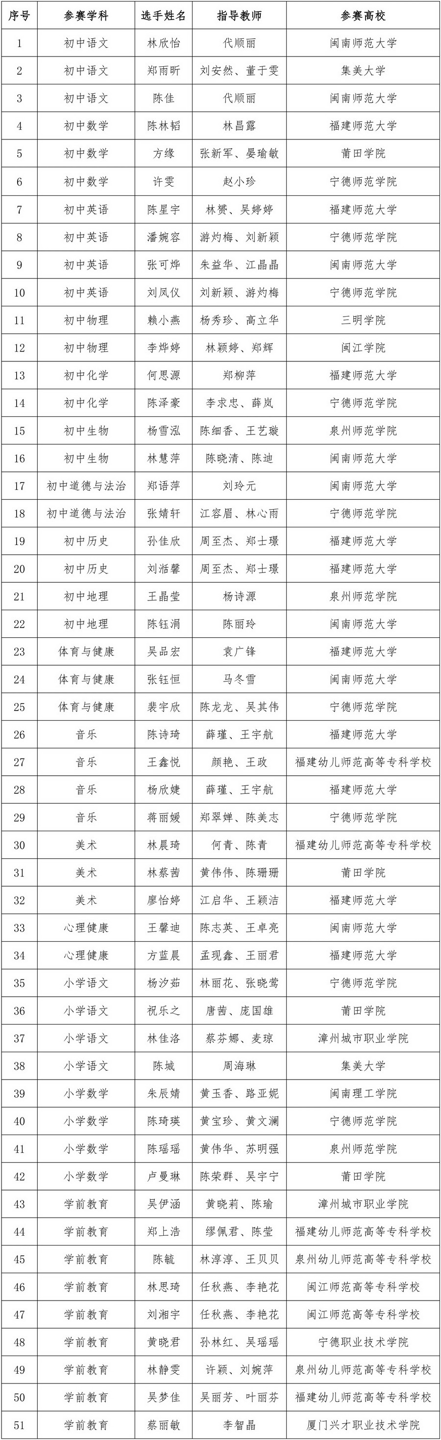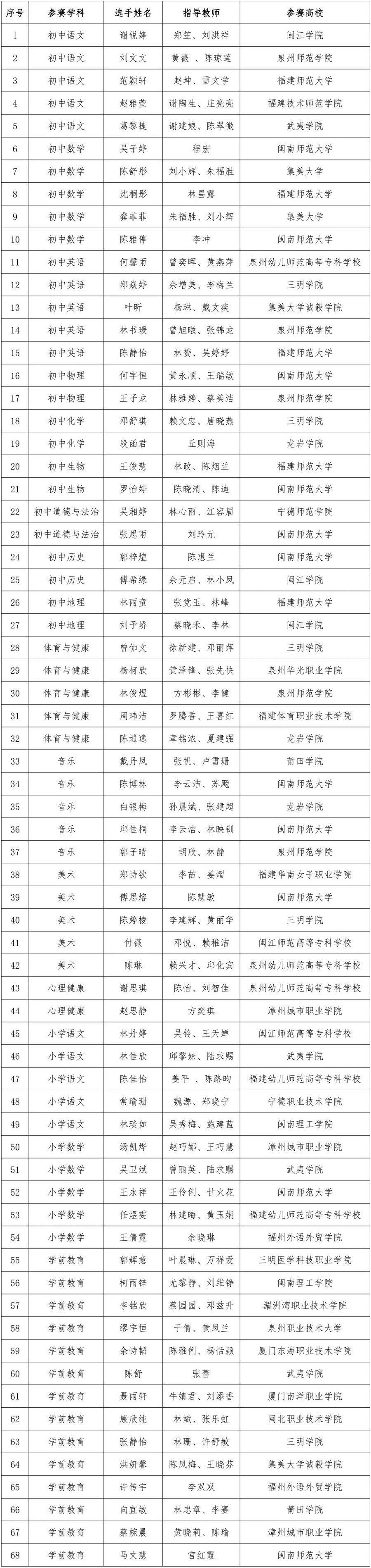 第十二屆福建省高校師范生教學(xué)技能大賽獲獎名單