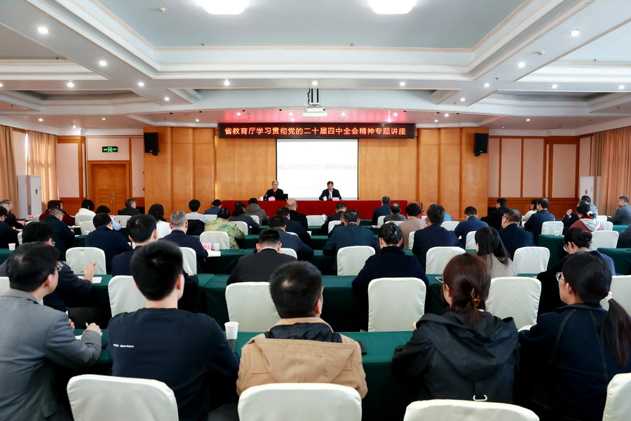 12月18日,省教育廳舉辦學習貫徹黨的二十屆四中全會精神專題講座,邀請省委黨校馬克思主義研究院院長李永杰教授作專題講座。省委教育工委副書記,省教育廳黨組成員、副廳長陳洪堯主持。