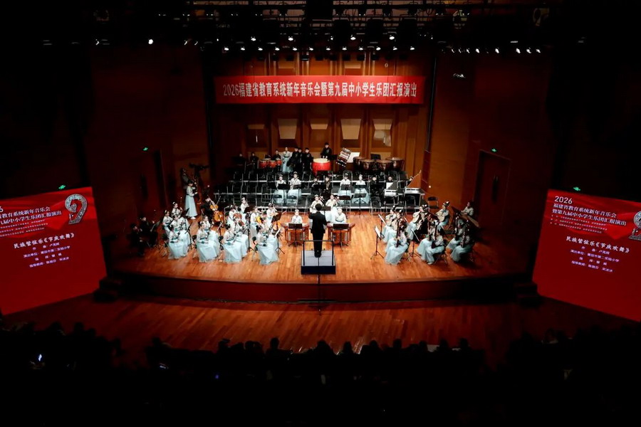 12月28日,由福建省委教育工委、省教育廳主辦,福建師范大學、福建省高校美育教學指導委員會承辦的2026年福建省教育系統新年音樂會暨第九屆中小學生樂團匯報演出在福州舉行。省直有關部門、各地市教育局有關負責同志和藝術專干,省高校美育教指委以及中小學校樂團指揮、藝術老師代表共500多人在現場共同觀看演出。