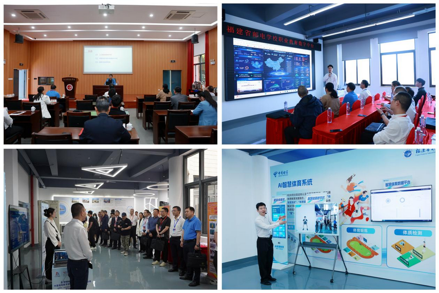 在學校通信技術職業(yè)體驗中心,與會嘉賓沉浸式了解百年通信發(fā)展史,現(xiàn)場體驗智慧校園管理、AI數(shù)字官“小郵”、校園AI安防預警系統(tǒng)、VR/AR實訓設備、智慧體育系統(tǒng)以及職業(yè)教育數(shù)字中臺等前沿技術應用。