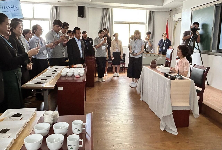 近日,福建農業職業技術學院成功舉辦“留學中國·國際暑期學?!ㄖ形?職業技能)”短期來華培訓班。本期培訓班以中國茶文化為主題,吸引來自泰國紅統技術學院、老撾國立大學的師生代表以及老撾教育部官員共50余人參與。培訓期間,學員通過專題課程、武夷山茶園采制體驗及茉莉花茶文化探訪等活動,沉浸式體驗閩茶文化技藝。